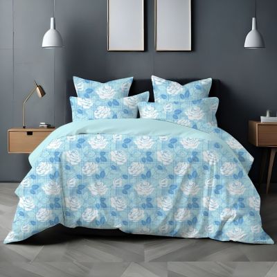 - KITEX - King Size Skyblue With White Flower Floral Bedsheet SD 90 - 4075 BMRP 1,130.00