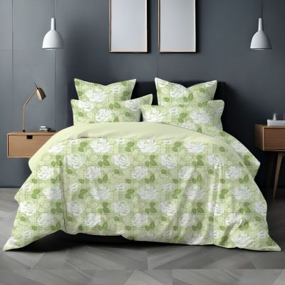 Inclusive of all taxes - KITEX - King Size Light green With Big Flower Floral Bedsheet SD 90 - 4082 CMRP 1,130.00