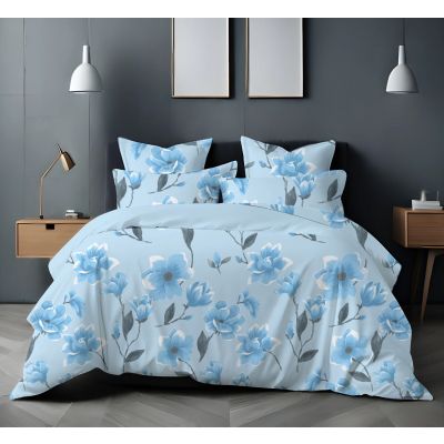 Inclusive of all taxes - KITEX - King Size Skyblue With Big Flower Floral Bedsheet SD 90 - 4082 AMRP 1,130.00