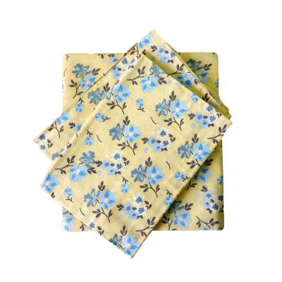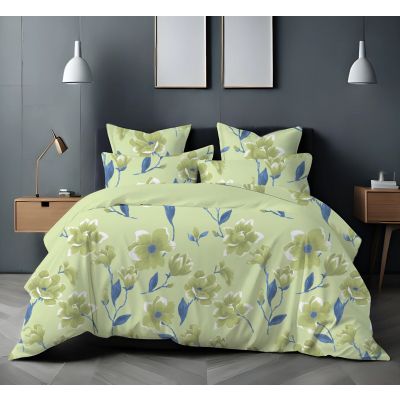 - Kitex- Dual Single Bedsheet With Two Pillow cover - Yellow With Skyblue FlowerMRP 670.00