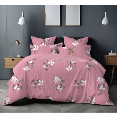 Inclusive of all taxes - KITEX - King Size Pink With White Flower Floral Bedsheet SD 90 - 4083 AMRP 1,130.00