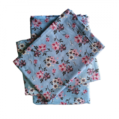 Inclusive of all taxes - Kitex- Dual Single Bedsheet With Two Pillow cover - Lightblue With Red FlowerMRP 670.00