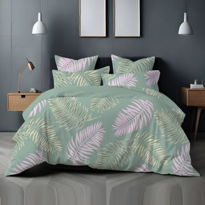 Inclusive of all taxes - KITEX -Polo Single Bedsheet with One Pillow cover - Light blue with Leaf DesignMRP 570.00