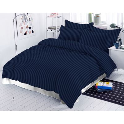 Inclusive of all taxes - KITEX HARVEST DREAMS 320 TC Satin Stripe Bedsheet with 2 Pillow cover ( Dark blue)MRP 1,110.00