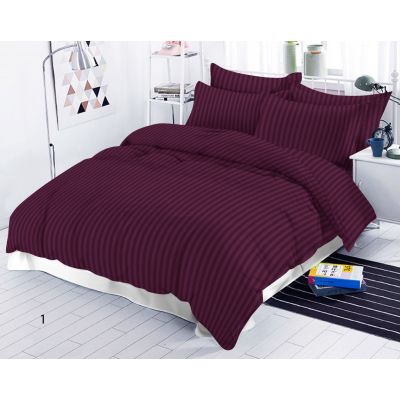 Inclusive of all taxes - KITEX HARVEST DREAMS 320 TC Satin Stripe Bedsheet with 2 Pillow cover ( Maroon)MRP 1,110.00