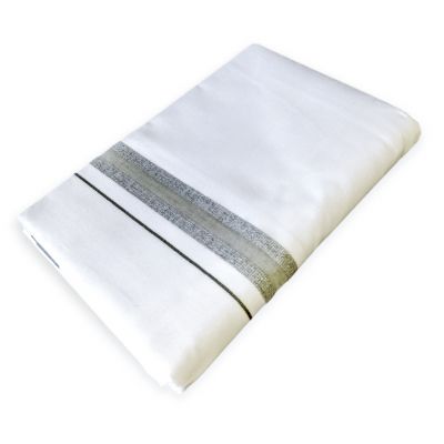 - Samrat Plus Light Double Dhoti - Light Ash with black colour wide borderMRP 690.00