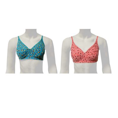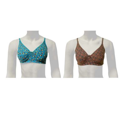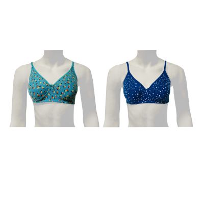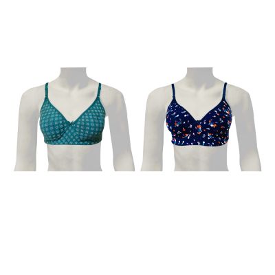 Inclusive of all taxes-10% - KITEX - Teenz Plus - Knitted T-Shirt Bra Green & Dark Blue Colour Printed (pack of 2)MRP 513.00