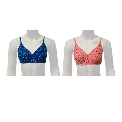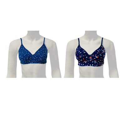 Inclusive of all taxes-10% - KITEX - Teenz Plus -Knitted T-Shirt Bra Peach & Dark blue Colour Printed (pack of 2)MRP 513.00