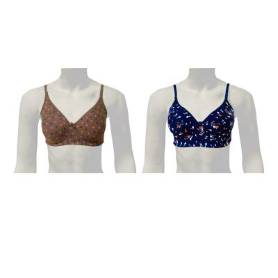 Inclusive of all taxes-10% - KITEX - Teenz Plus -Knitted T-Shirt Bra Brown & Blue Colour Printed (pack of 2)MRP 513.00