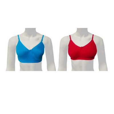 Inclusive of all taxes-10% - KITEX - Dayana - Knitted T-Shirt Bra Red & Ocean Blue Colour (pack of 2)MRP 450.00